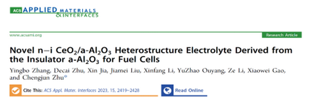 Besides, the research team of Prof. Zhu Chengjun has also made important progress in the research of semiconductor heterostructure for the low temperature solid oxide fuel cells. The research result concerned has been published in the international top journal in engineering materials science-ACS Appl. Mater. Interfaces. The article is titled as “Novel n−i CeO2/a-Al2O3 Heterostructure Electrolyte Derived from the Insulator a‑Al2O3 for Fuel Cells”(URL of the article: http://pubs-acs-org-s.vpn.imu.edu.cn:8118/doi/epdf/10.1021/acsami.2c18240)
