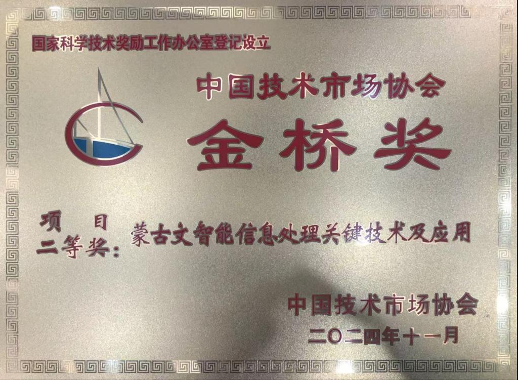 12月14日,第十二届中国技术市场协会金桥奖颁奖典礼在北京隆重举行。飞龙教授团队的“蒙古文智能信息处理关键技术及应用”荣获项目二等奖,这也是365英国上市集团官网首次获得该奖项。中国技术市场协会金桥奖是经国家科学技术奖励办公室审定、批准设立的全国技术市场最高奖项,每两年评选一次,以促进科技成果转化、推动我国技术市场繁荣和发展为宗旨。这一奖项的获得,标志着365官网在科技创新与成果转化方面取得了新的重要进展。
