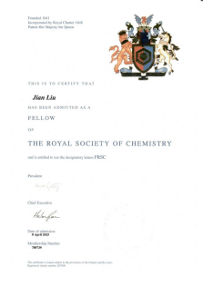 近日,365官网化学化工学院院长刘健教授当选为英国皇家化学学会会士(Fellow of the Royal Society of Chemistry, FRSC),以表彰其在化学科学领域的杰出贡献。