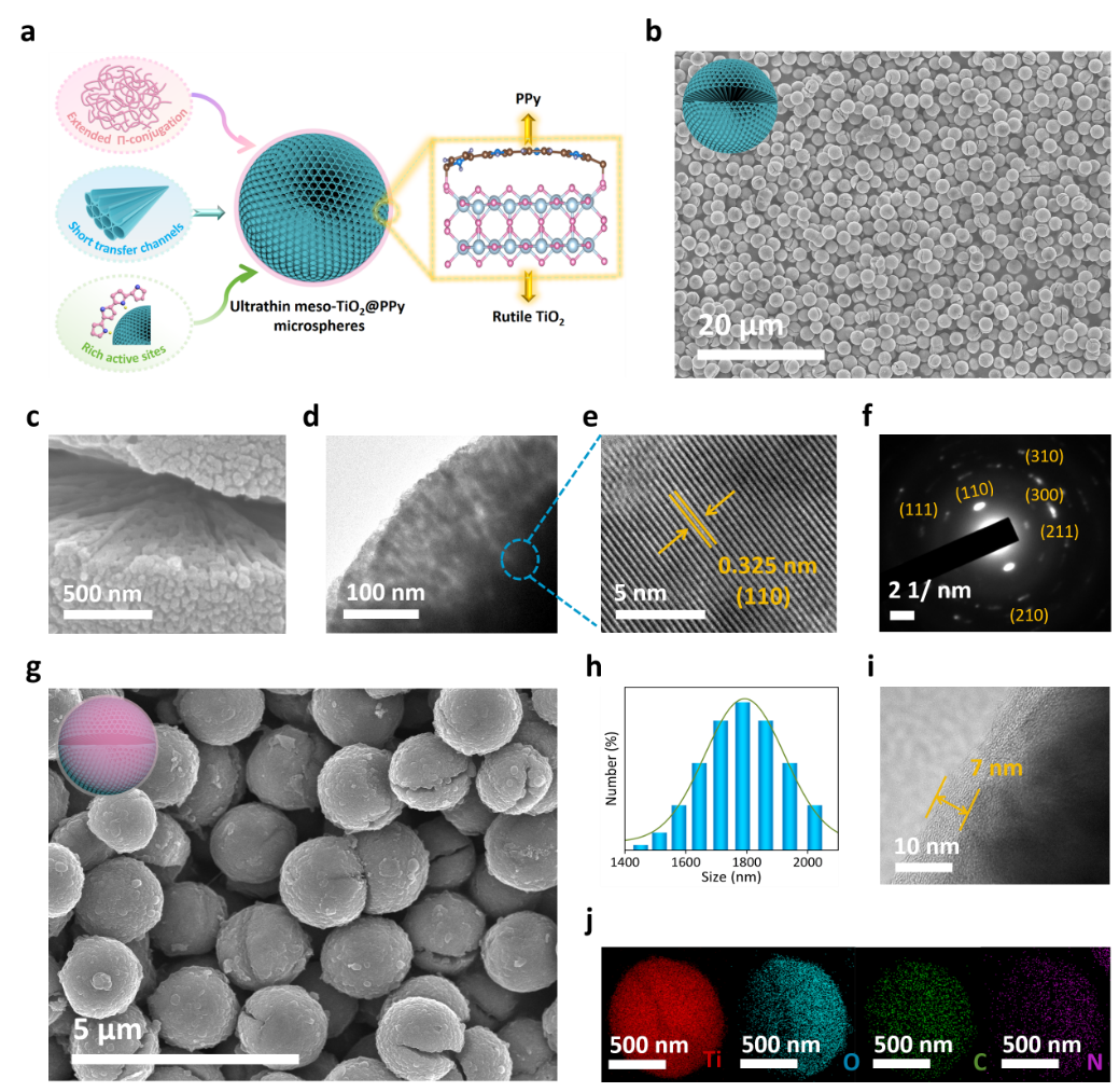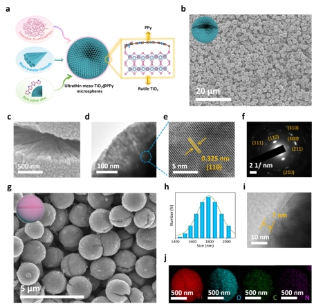图2. 介孔复合材料meso-TiO2@PPy合成与表征