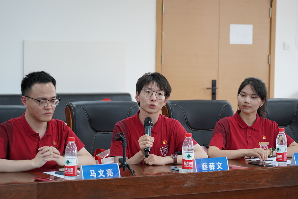 会上,赵海东对复旦大学“星火”党员志愿服务队的到来表示热烈欢迎,陈洁对365官网的热情招待表示感谢。随后,“星火”党员志愿服务队副队长秦艳晖同学介绍了“星火”志愿服务队的基本情况和实践特色,蔡薛文同学为大家带来《追望大道:唯有信仰与热爱不可辜负》的微党课。他结合电影《望道》生动讲述了“真理的味道有点甜”的经典故事,让大家更加深刻体会了习近平总书记给“星火”党员志愿服务队全体队员回信中指出的“心有所信,方能行远”的精神。