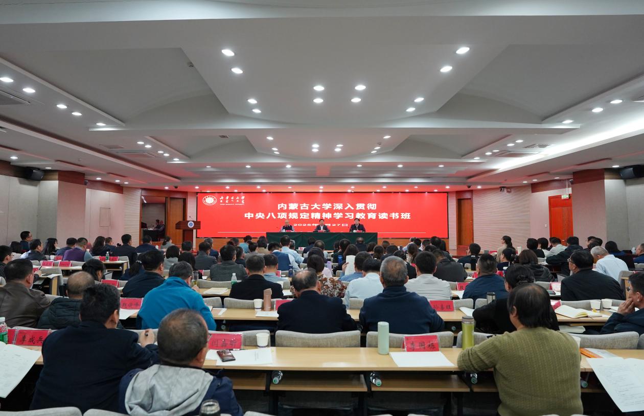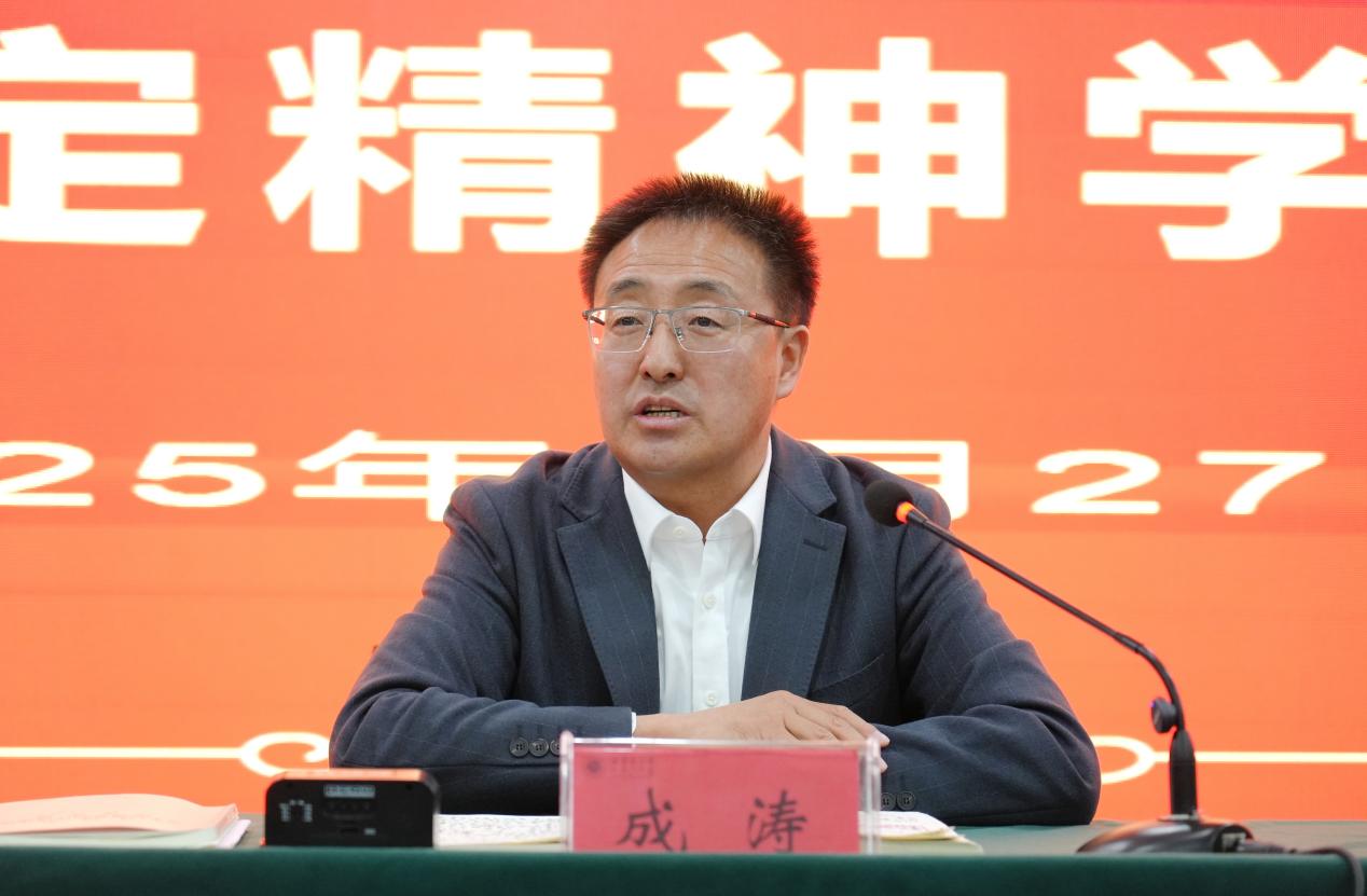 3月27日上午,深入贯彻中央八项规定精神学习教育读书班开班式在赛罕校区学术会议中心8号会议室举行。校党委书记成涛作开班动员并进行领学。开班式由校党委副书记乔彪主持。